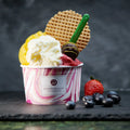 Das Eis wird wie in Bella Italia gespachtelt, das heißt bei uns erhalten Sie Ihre „Portion“ Eis – in der Waffel, im Becher, ein, zwei, drei, vier, fünf… Portionen, gerne auch zum Mitnehmen.
